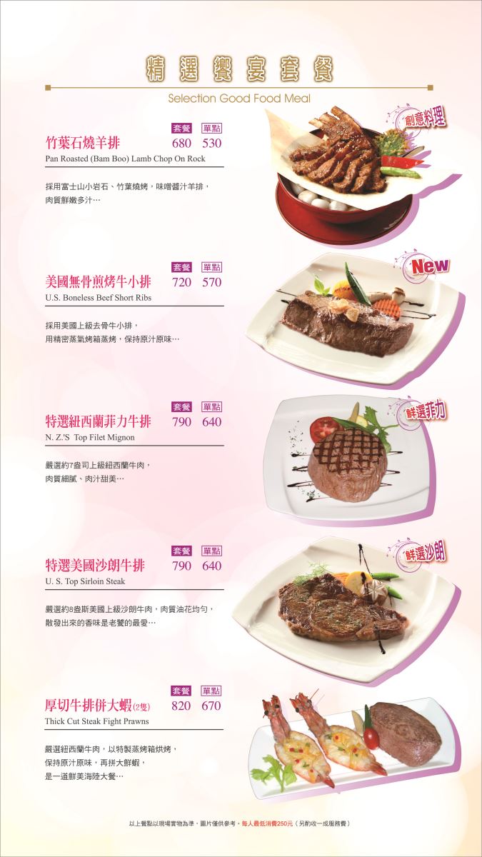 【御書園食尚牛排】從經典牛排西餐基礎中脫胎換骨,將二十年的西餐專業,加入創意發想,激盪出時尚、品味的全新風格,以套餐的形式打造出「食尚牛排館」特色,精緻優質的品質與服務,要讓你感受嶄新的品牌活力。