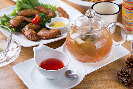 誘人的雞翅散發淡淡的香氣,細細嗅聞即可發現裏頭暗藏的檸檬氣息,讓這道雞翅料理更顯得清爽、多層次,一口咬下,肉質鮮嫩多汁,絕對是吮指的好滋味。